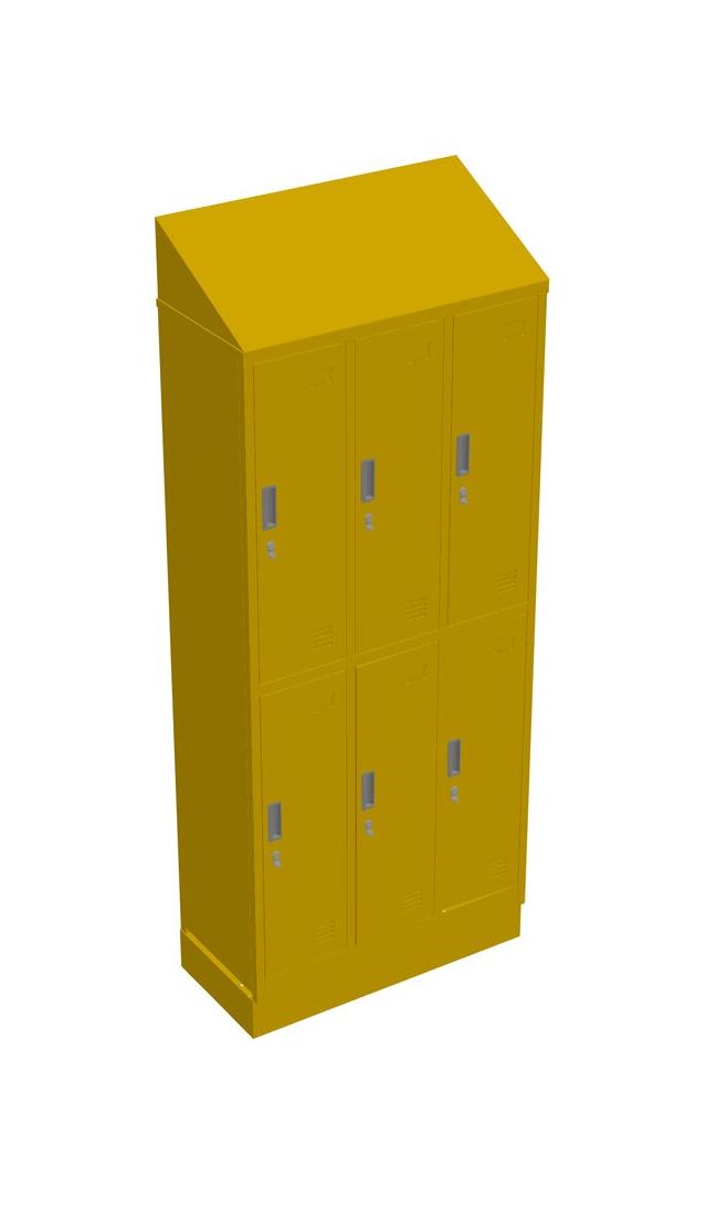 Signal Yellow 6 Door Locker With Locker Base With Slopping Top - Foldable Structure - Padlock