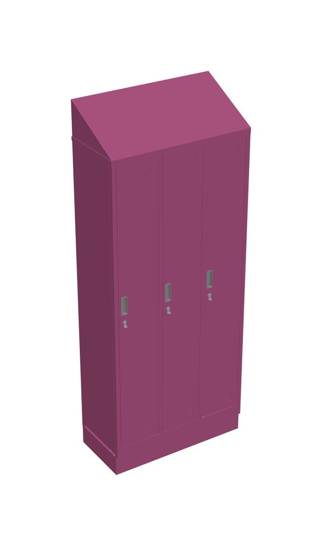Antique 3 Door Locker With Locker Base With Slopping Top - Foldable Structure - Padlock
