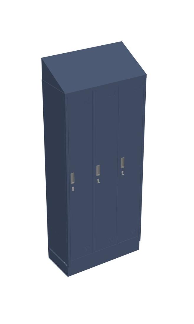 Distant Blue 3 Door Locker With Locker Base With Slopping Top - Foldable Structure - Padlock