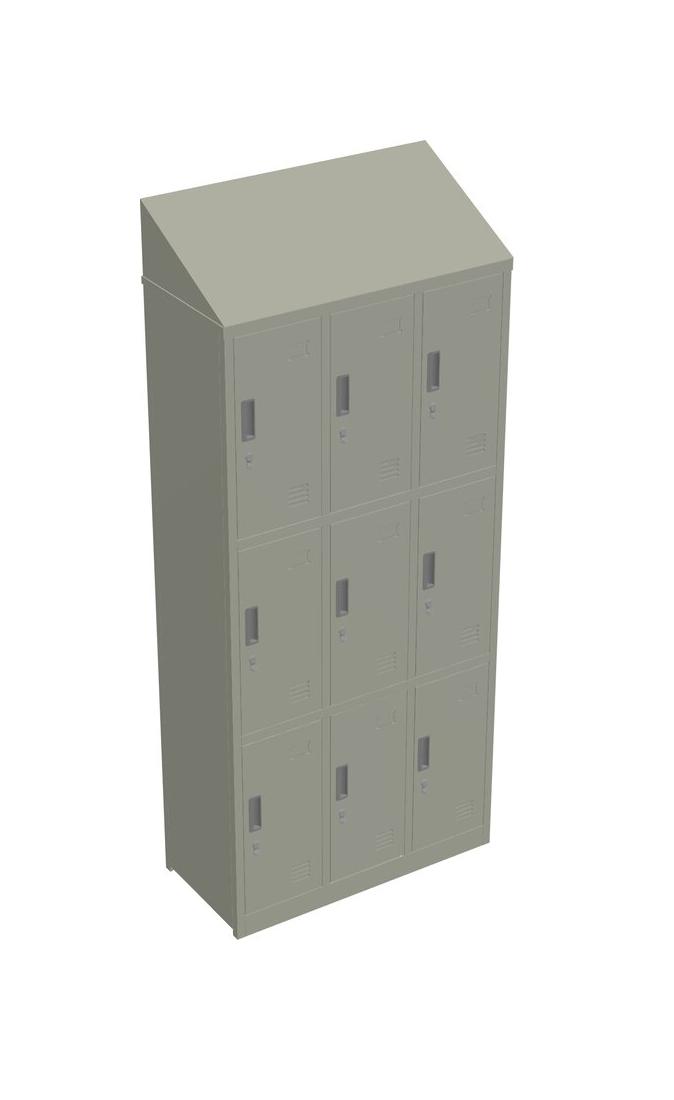Grey White 9 Door Locker With Slopping Top - Foldable Structure - Padlock