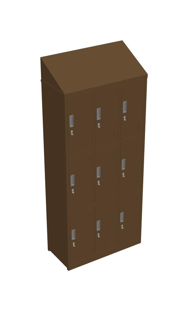 Khaki Grey 9 Door Locker With Slopping Top - Foldable Structure - Padlock