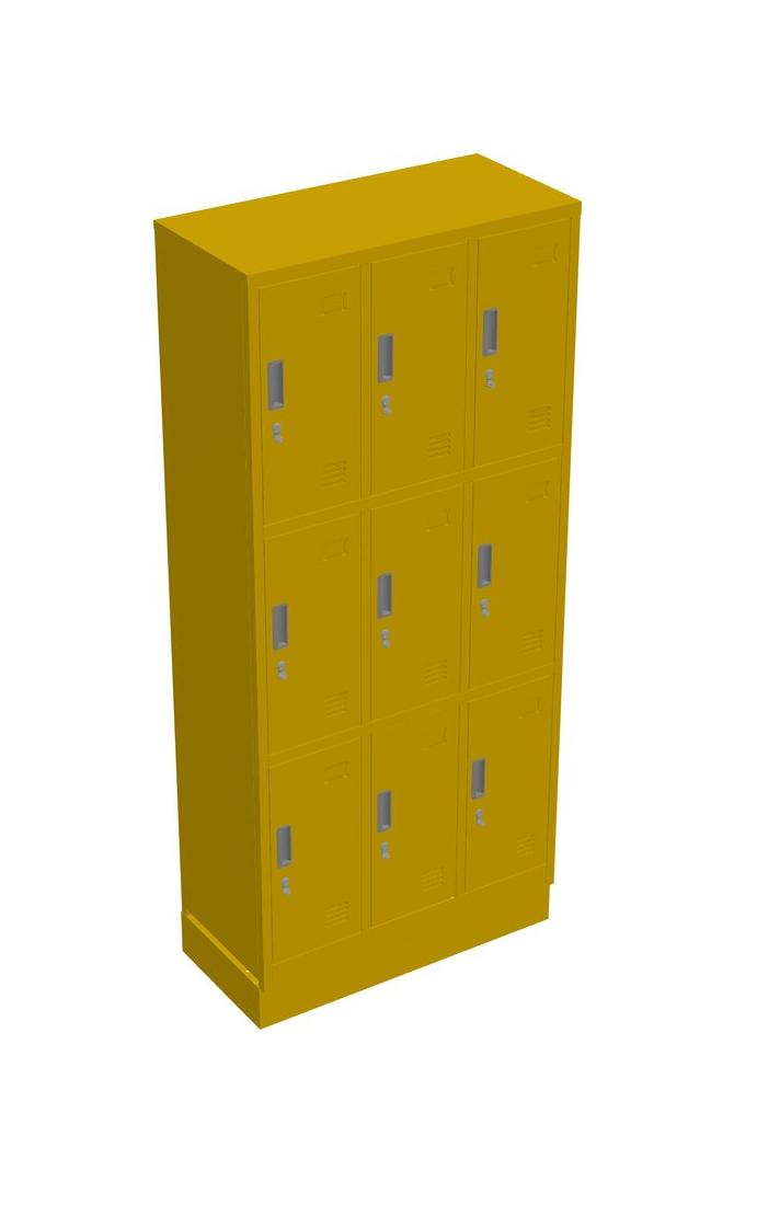 Signal Yellow 9 Door Locker With Locker Base - Foldable Structure - Padlock