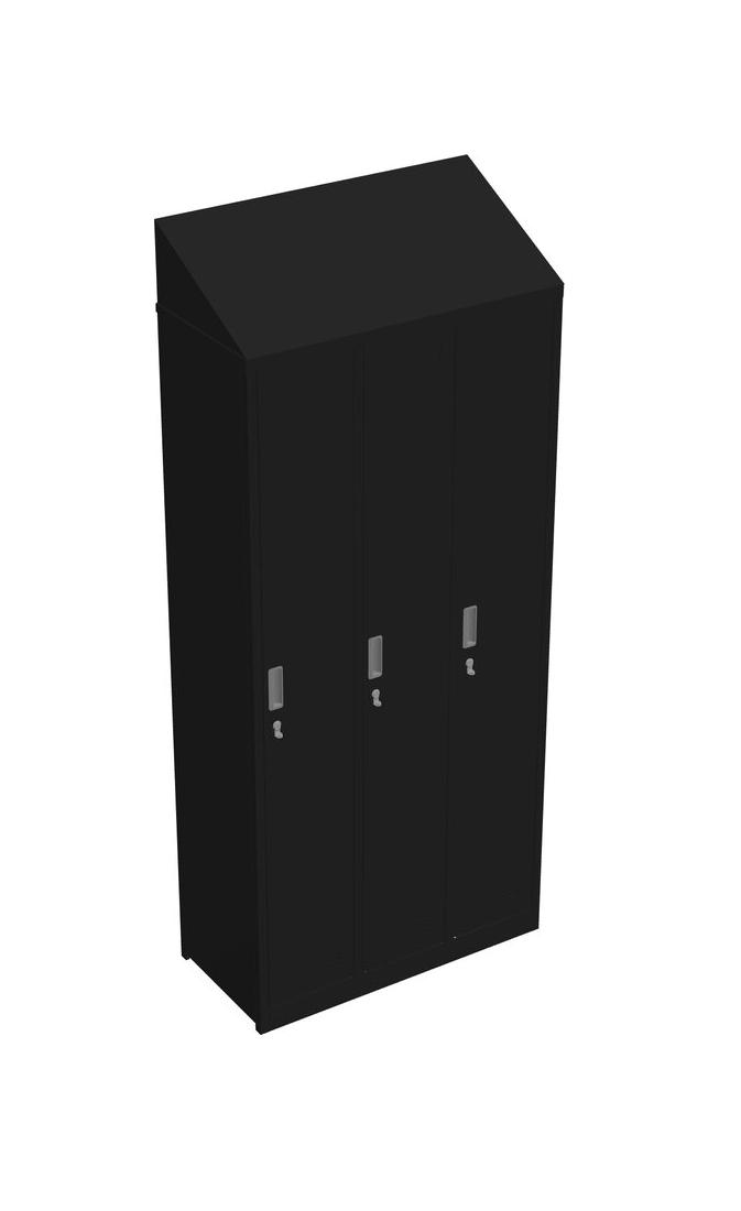 Black 3 Door Locker With Slopping Top - Foldable Structure - Padlock