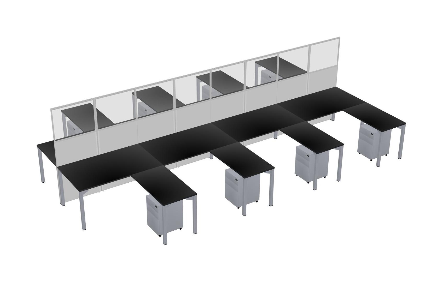 Black Shared L-shape Office Cubicle Panel System For 8 Persons