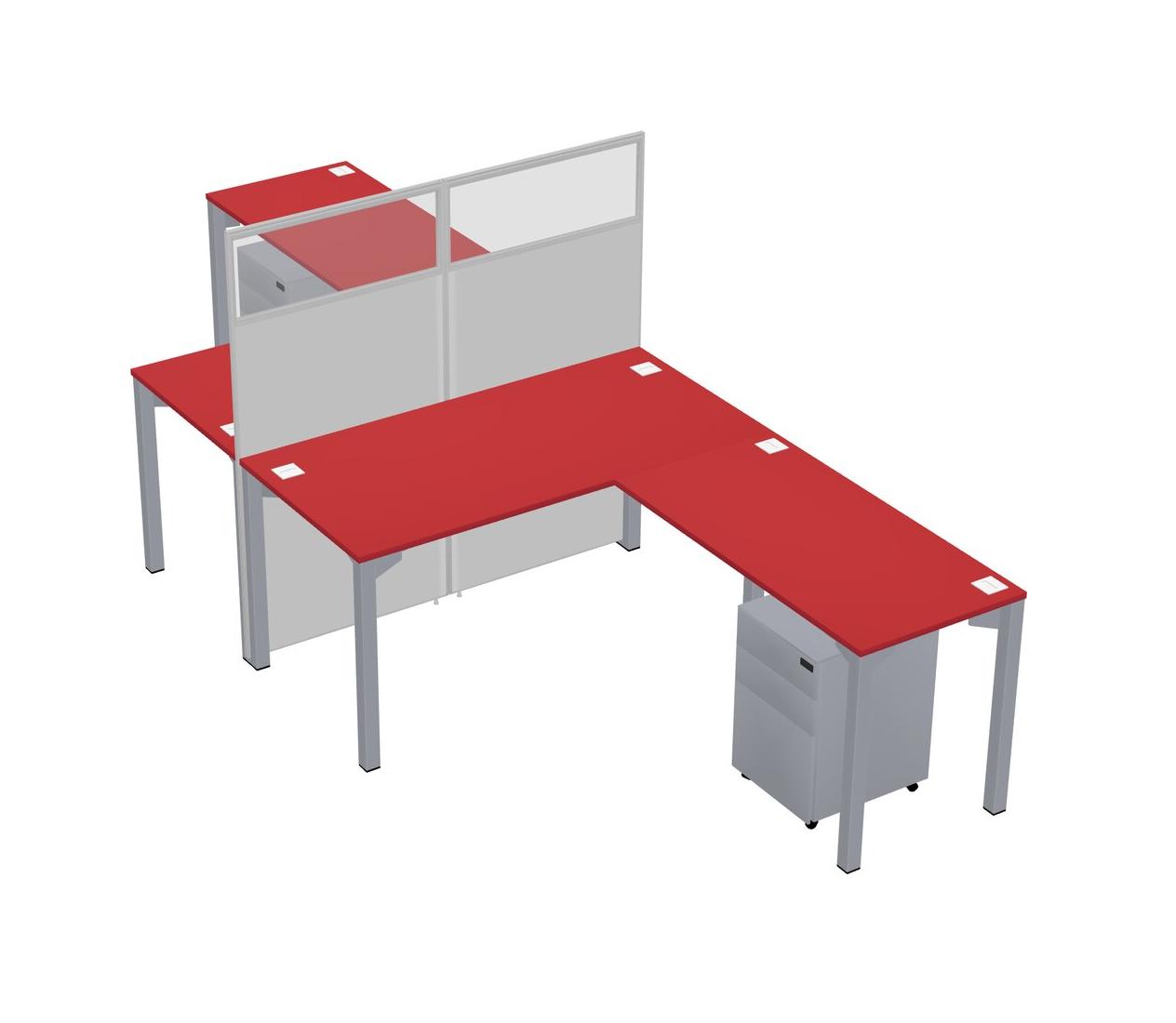 Prism Red Shared L-shape Office Cubicle Panel System For 2 Persons
