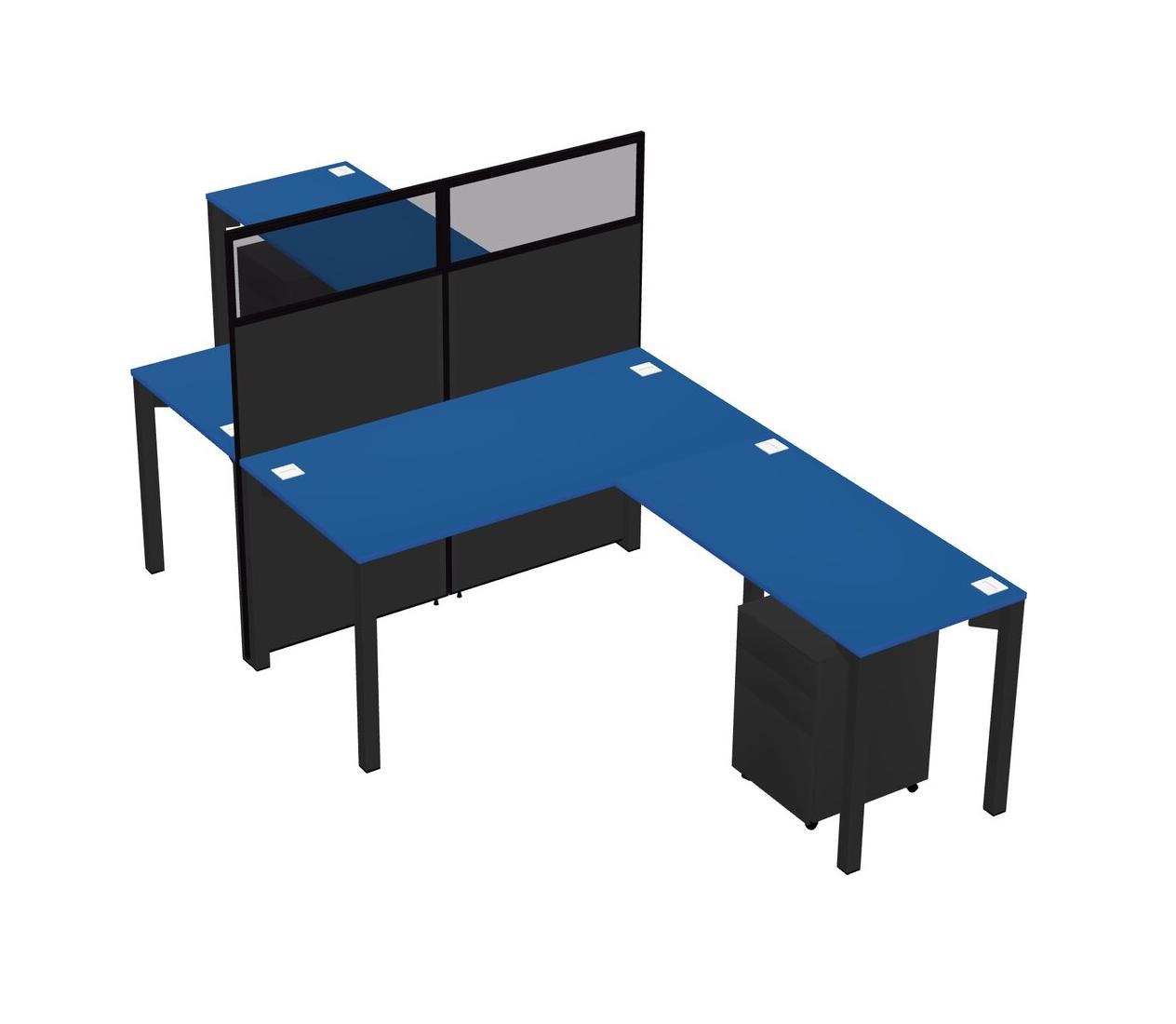 Prism Blue Shared L-shape Office Cubicle Panel System For 2 Persons