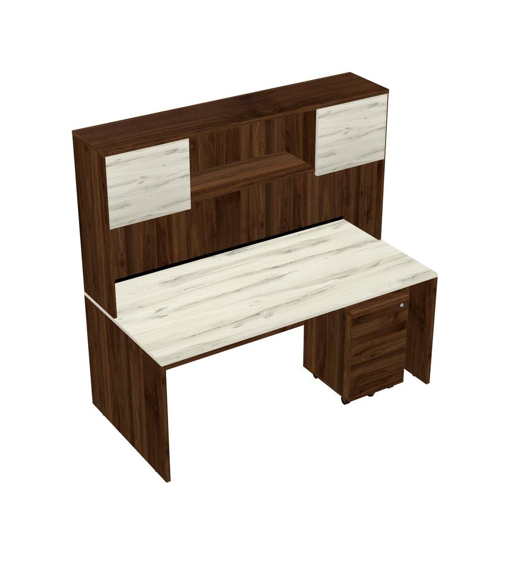 Heinne Holz Rectangular Office Desk Plus Columbia Walnut Wooden Mobile Drawers And Columbia Walnut Hutch