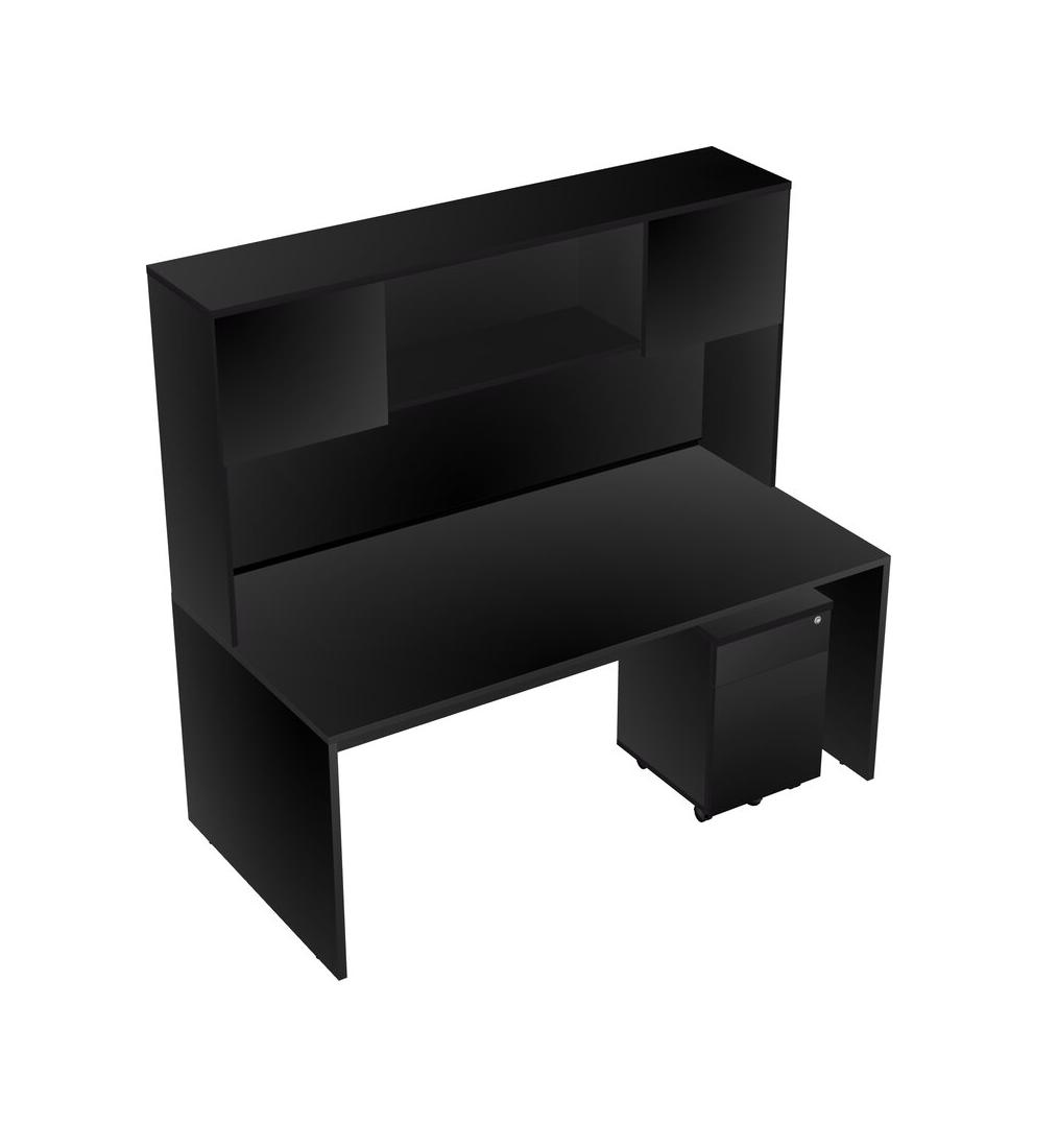 Black Rectangular Office Desk Plus Black Wooden Mobile Drawers And Black Hutch