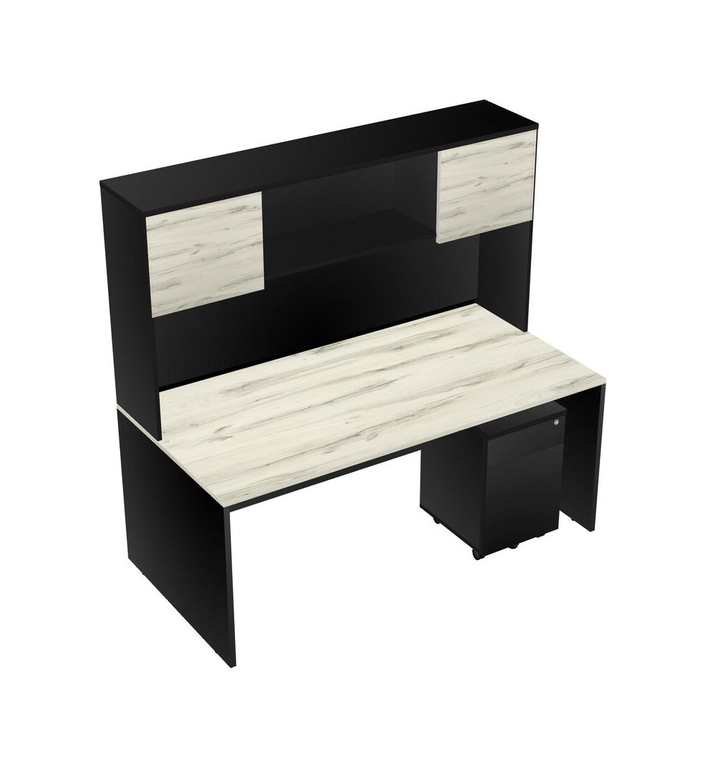 Heinne Holz Rectangular Office Desk Plus Black Wooden Mobile Drawers And Black Hutch