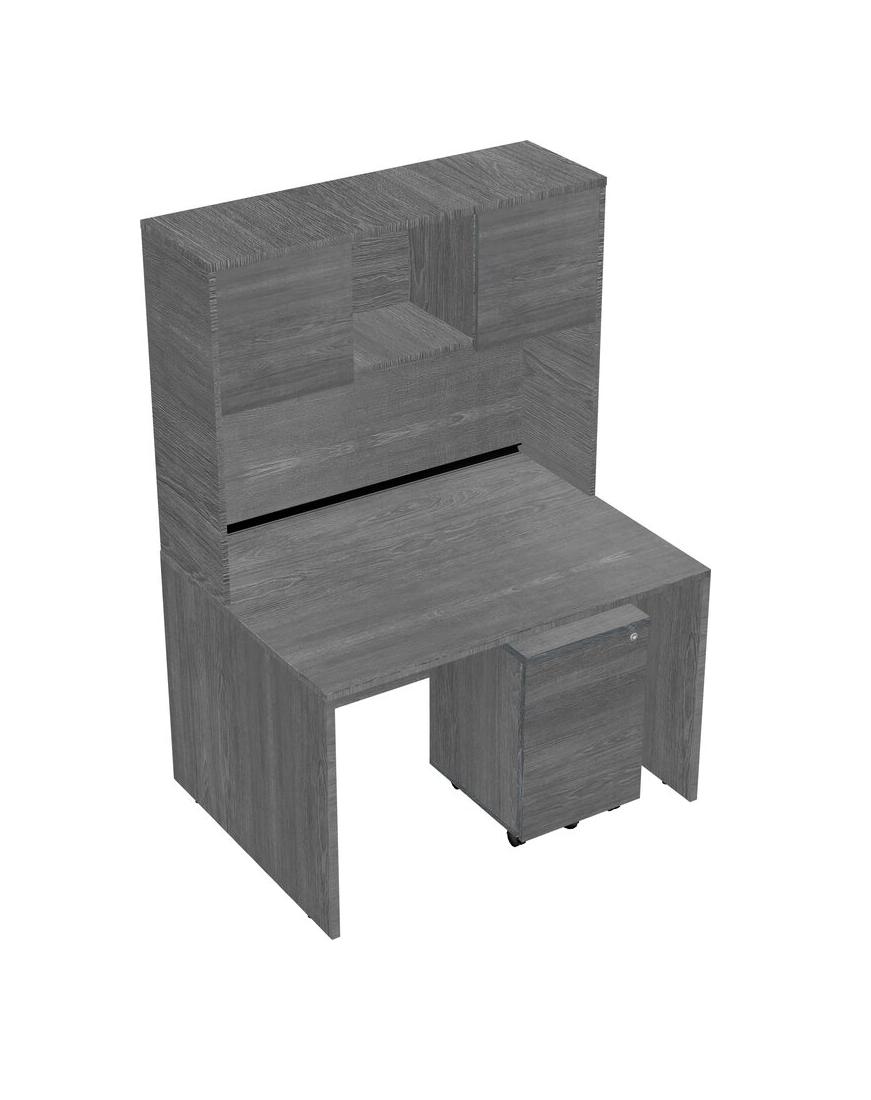 Grey Rectangular Office Desk Plus Grey Wooden Mobile Drawers And Grey Hutch
