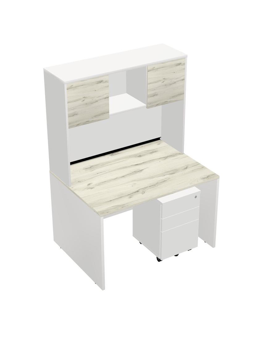 Heinne Holz Rectangular Office Desk Plus White Wooden Mobile Drawers And White Hutch