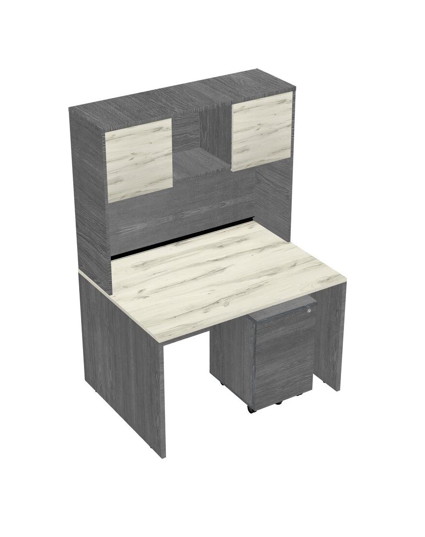 Heinne Holz Rectangular Office Desk Plus Grey Wooden Mobile Drawers And Grey Hutch