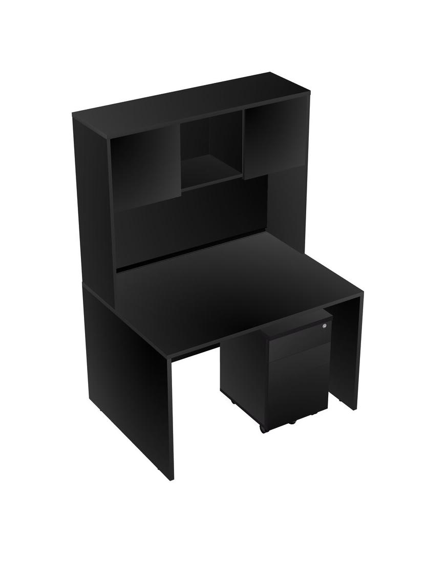 Black Rectangular Office Desk Plus Black Wooden Mobile Drawers And Black Hutch