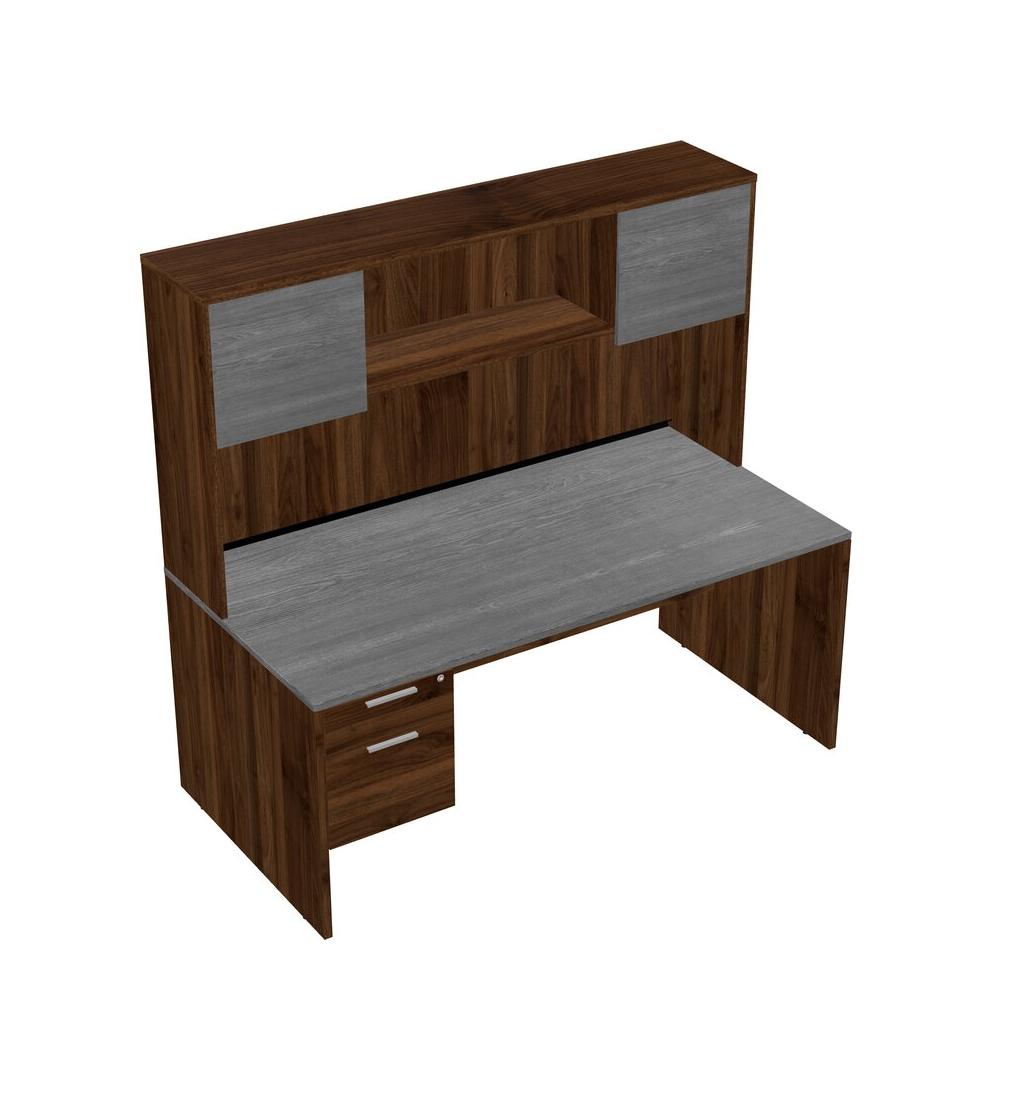 Grey Rectangular Office Desk Plus Columbia Walnut Hanging Drawers And Columbia Walnut Hutch