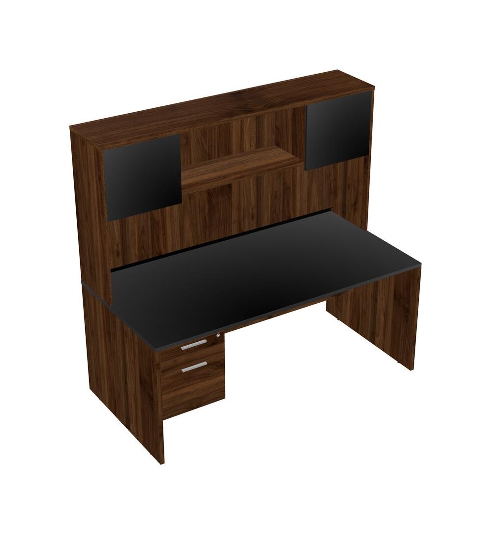 Black Rectangular Office Desk Plus Columbia Walnut Hanging Drawers And Columbia Walnut Hutch