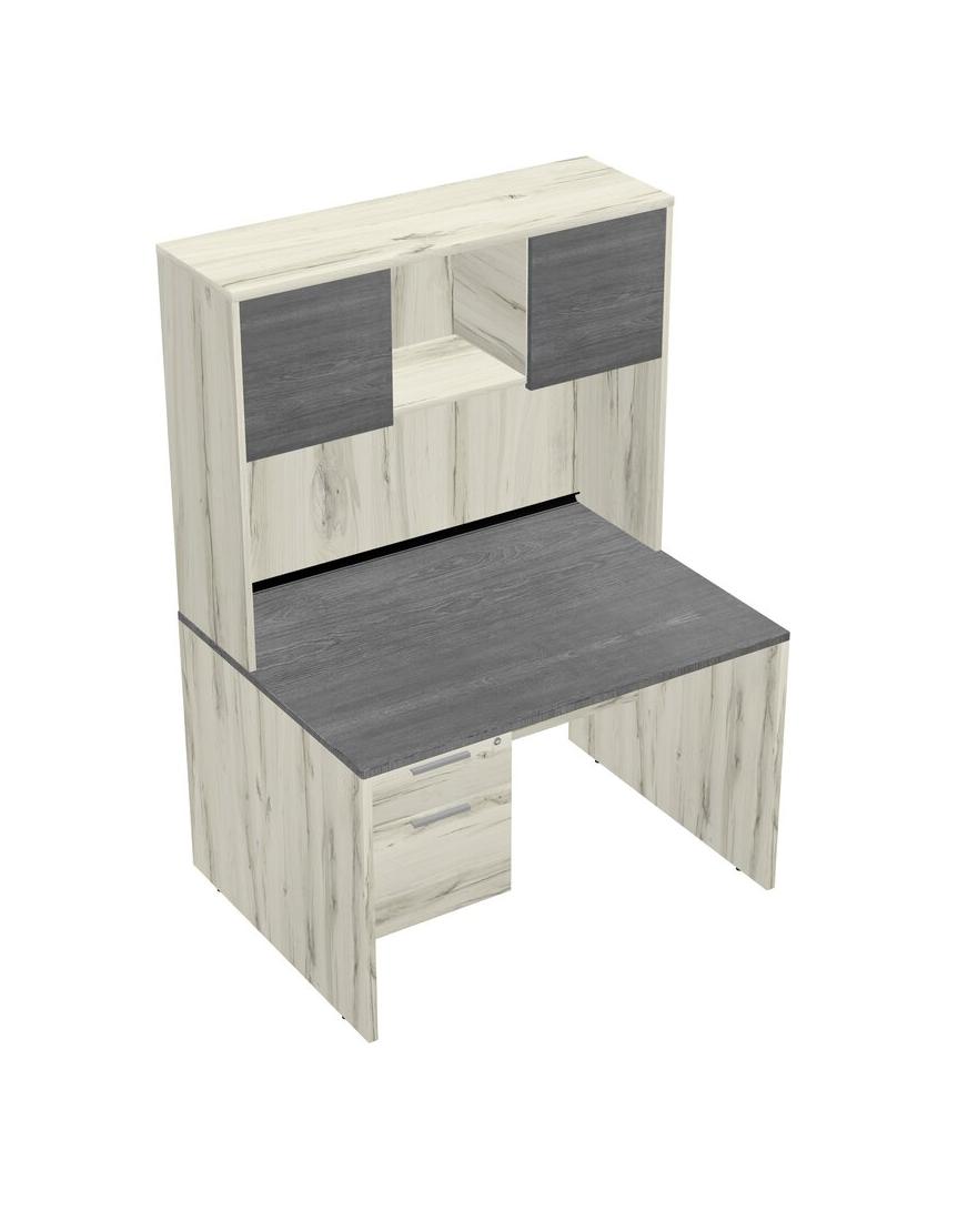 Grey Rectangular Office Desk Plus Heinne Holz Hanging Drawers And Heinne Holz Hutch