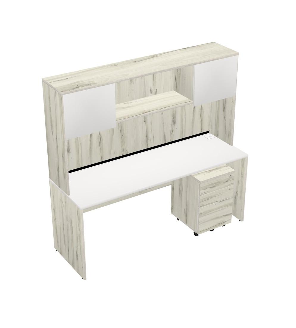 White Rectangular Office Desk Plus Heinne Holz Wooden Mobile Drawers And Heinne Holz Hutch
