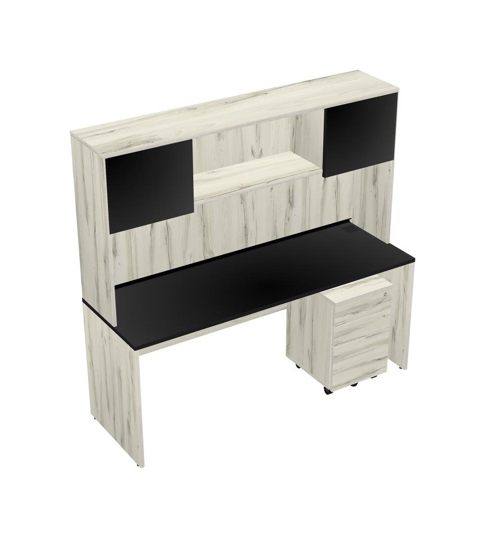 Black Rectangular Office Desk Plus Heinne Holz Wooden Mobile Drawers And Heinne Holz Hutch