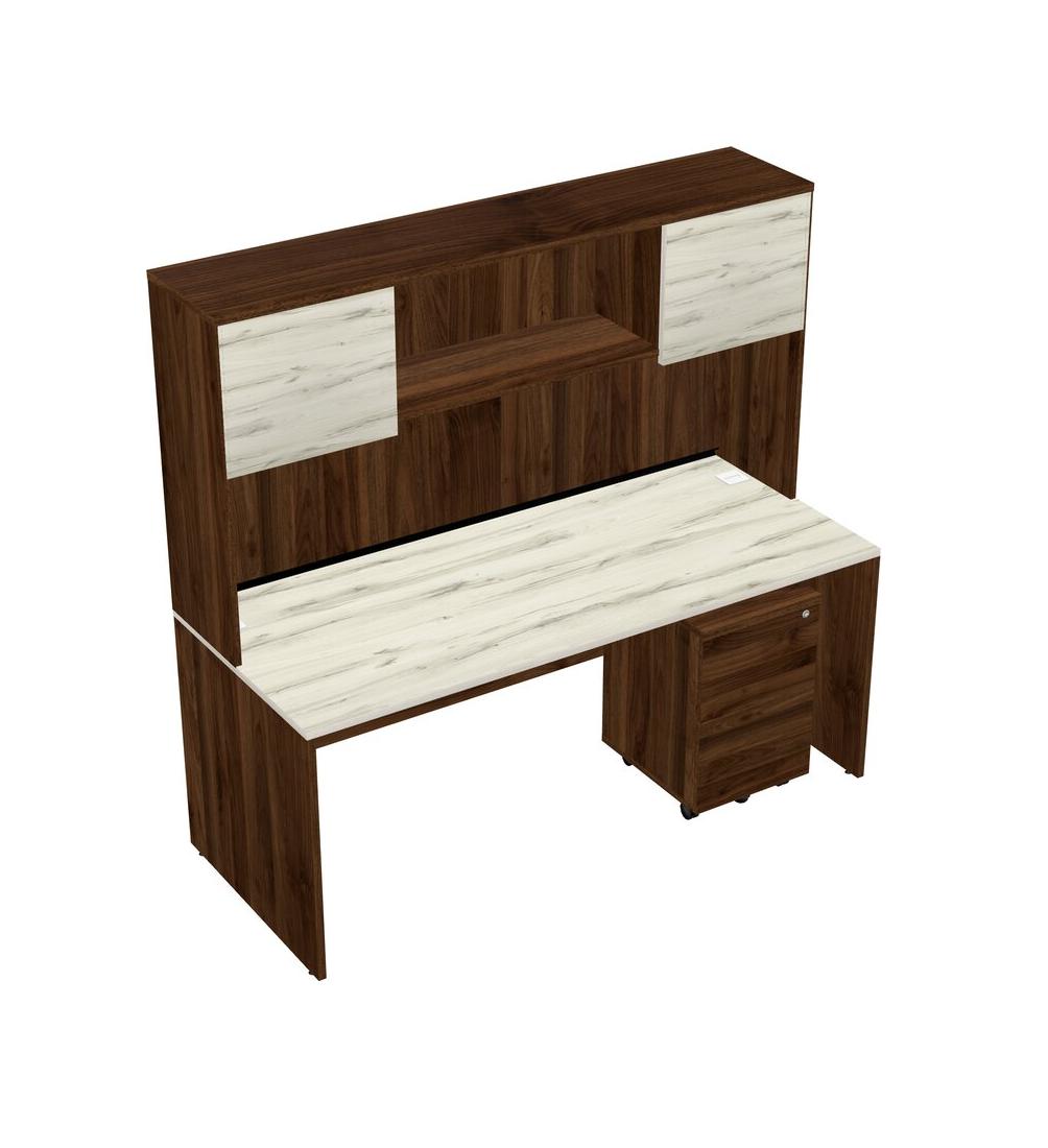 Heinne Holz Rectangular Office Desk Plus Columbia Walnut Wooden Mobile Drawers And Columbia Walnut Hutch