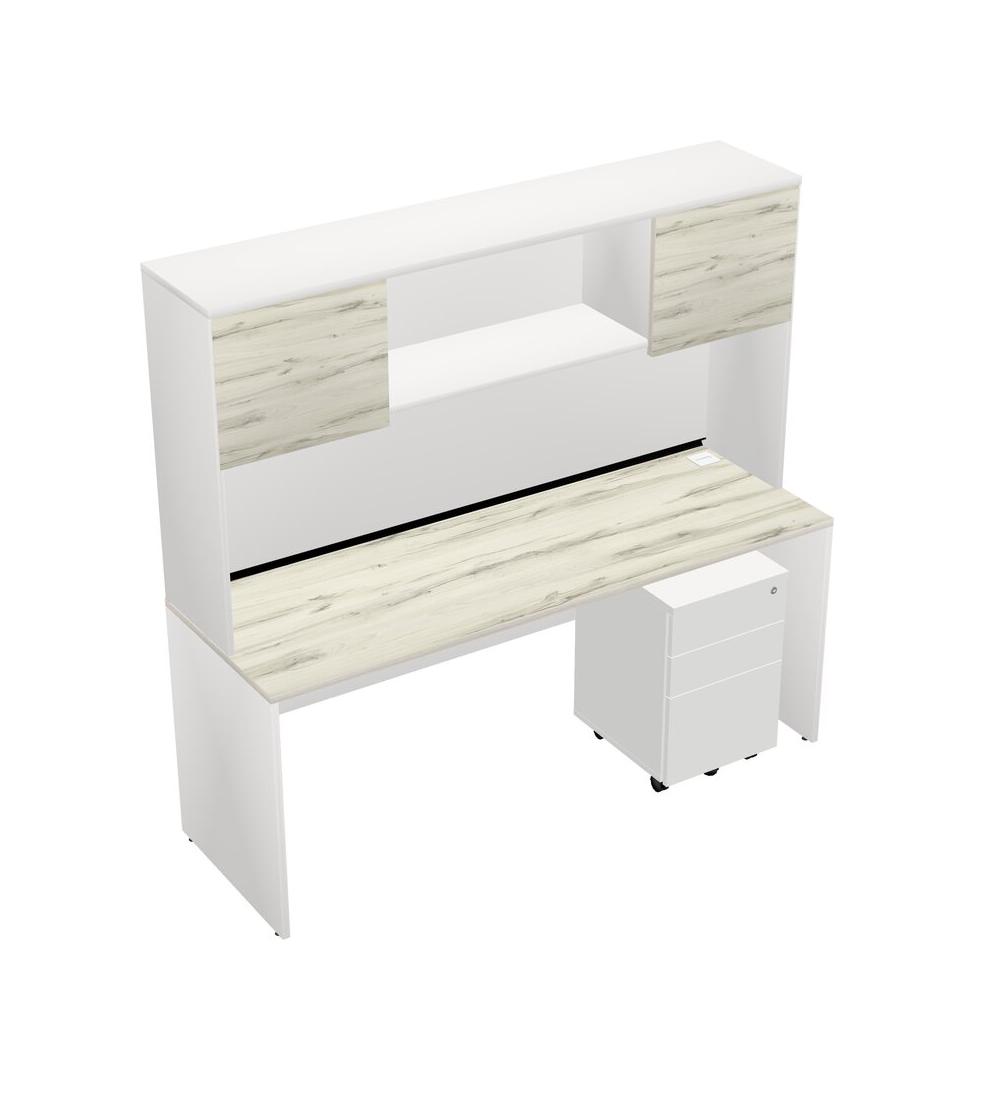 Heinne Holz Rectangular Office Desk Plus White Wooden Mobile Drawers And White Hutch