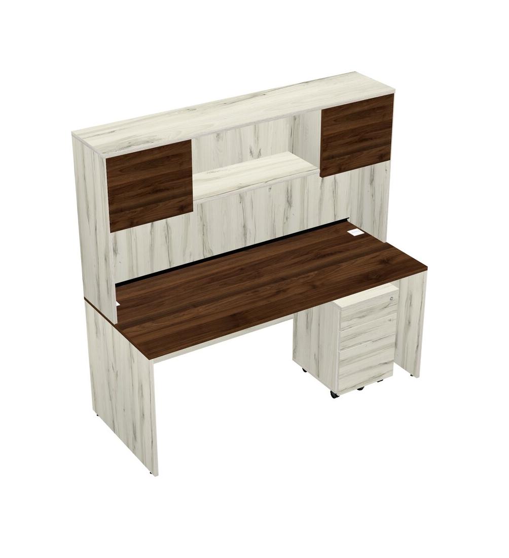 Columbia Walnut Rectangular Office Desk Plus Heinne Holz Wooden Mobile Drawers And Heinne Holz Hutch