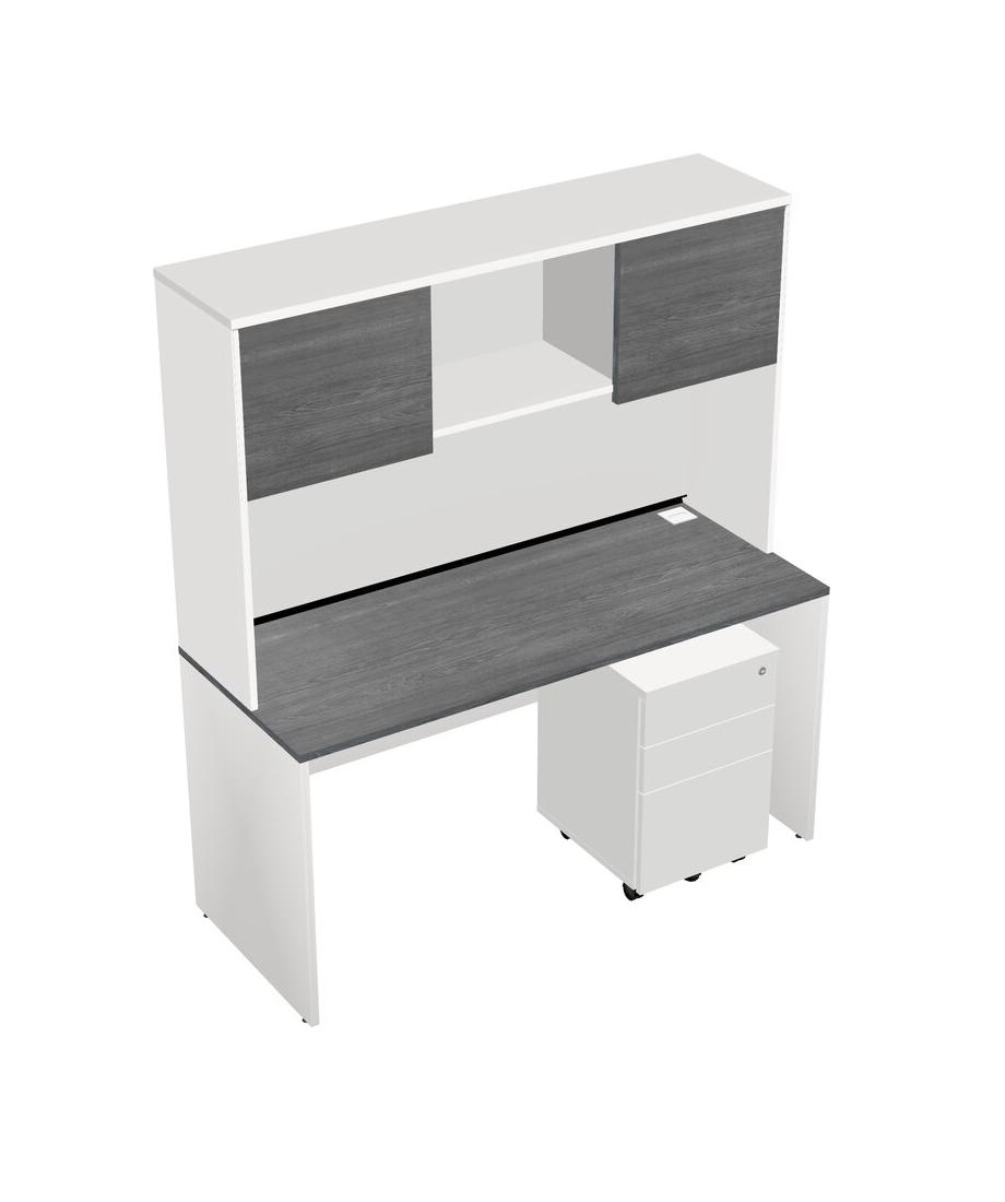 Grey Rectangular Office Desk Plus White Wooden Mobile Drawers And White Hutch