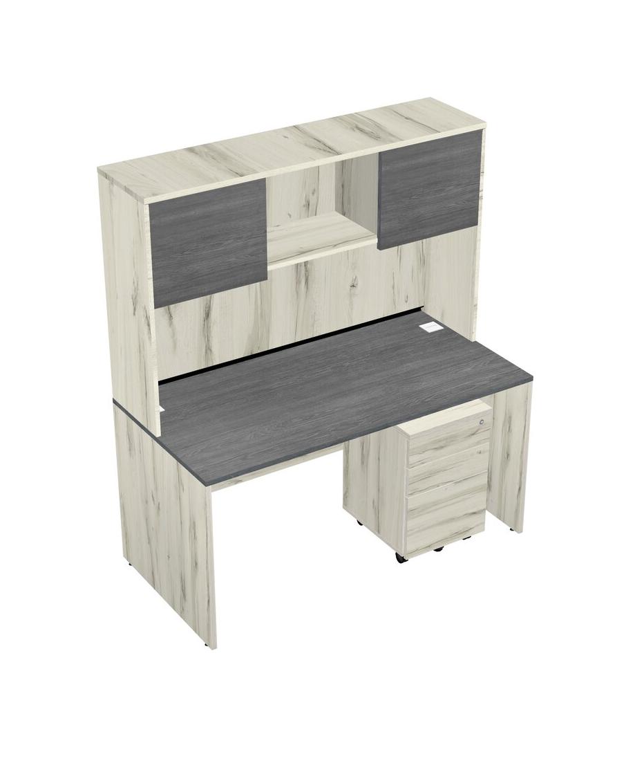 Grey Rectangular Office Desk Plus Heinne Holz Wooden Mobile Drawers And Heinne Holz Hutch