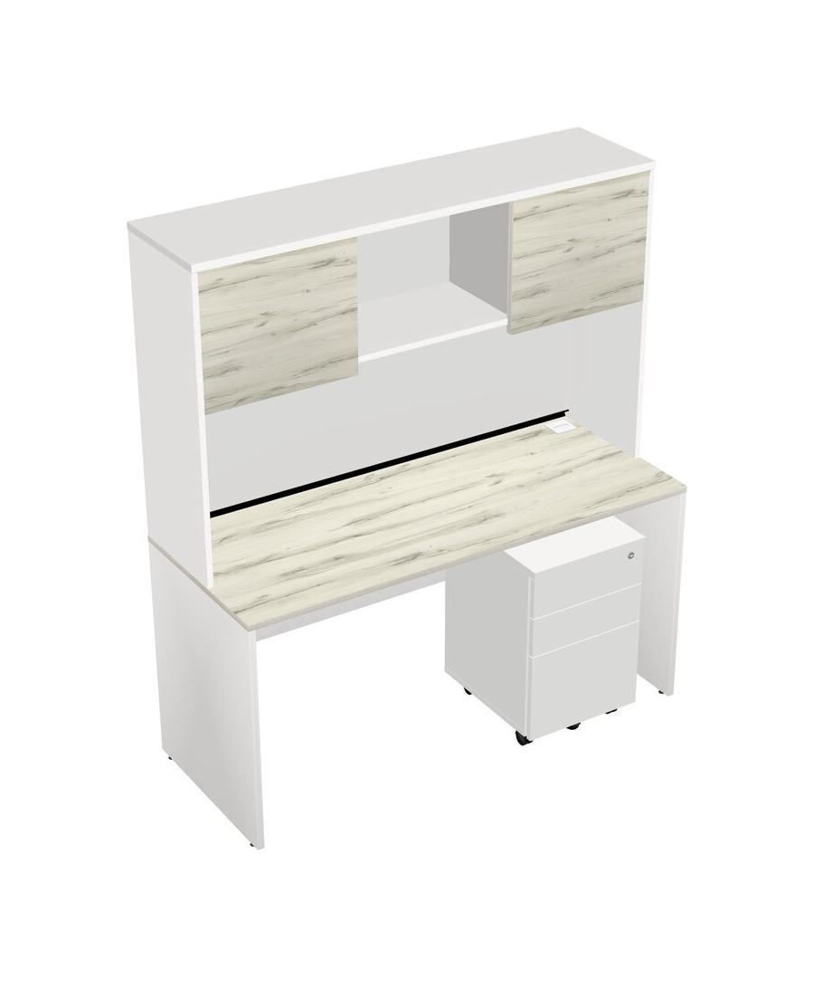 Heinne Holz Rectangular Office Desk Plus White Wooden Mobile Drawers And White Hutch