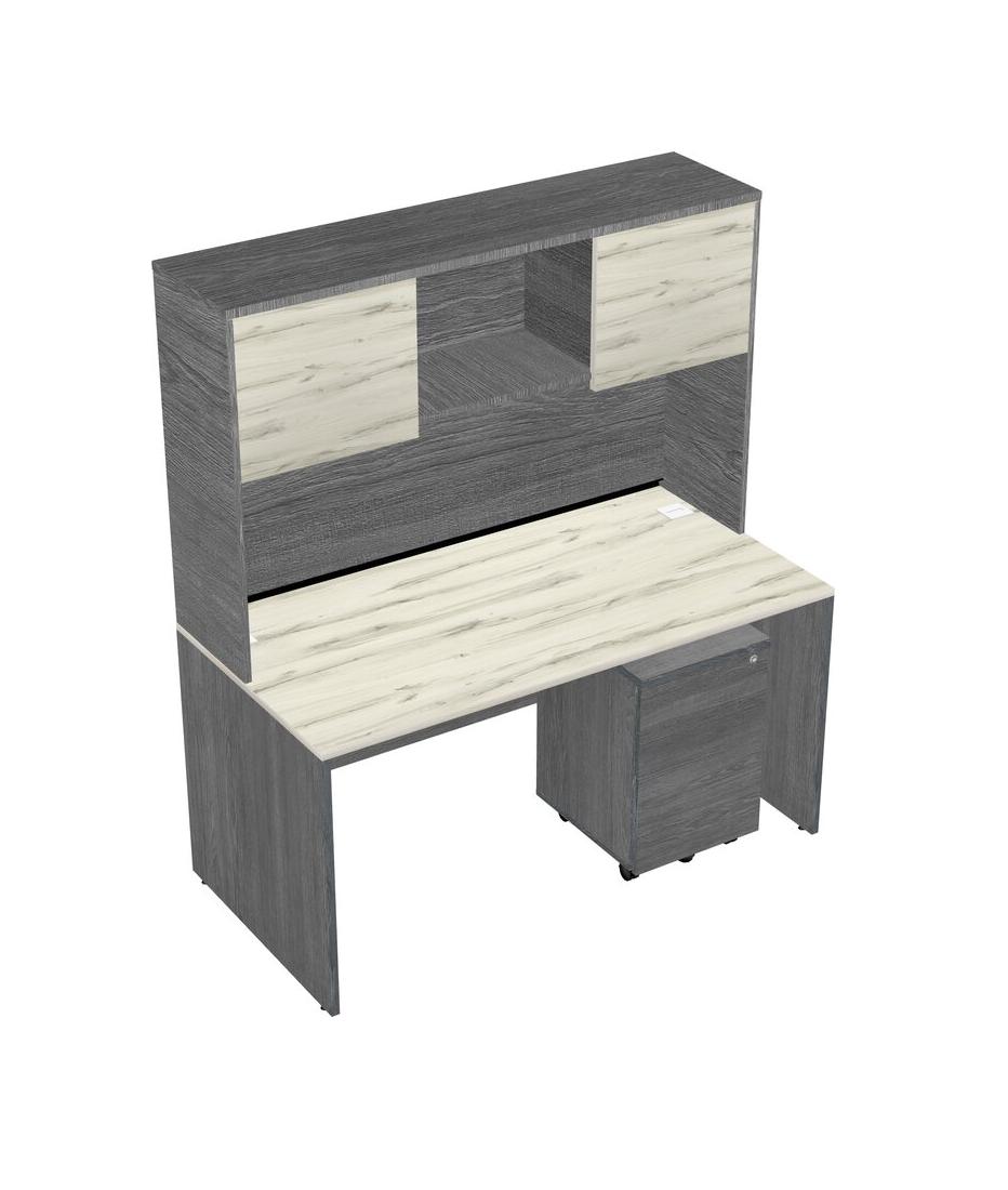 Heinne Holz Rectangular Office Desk Plus Grey Wooden Mobile Drawers And Grey Hutch