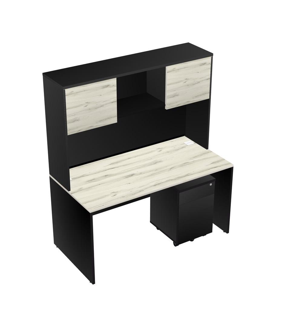 Heinne Holz Rectangular Office Desk Plus Black Wooden Mobile Drawers And Black Hutch