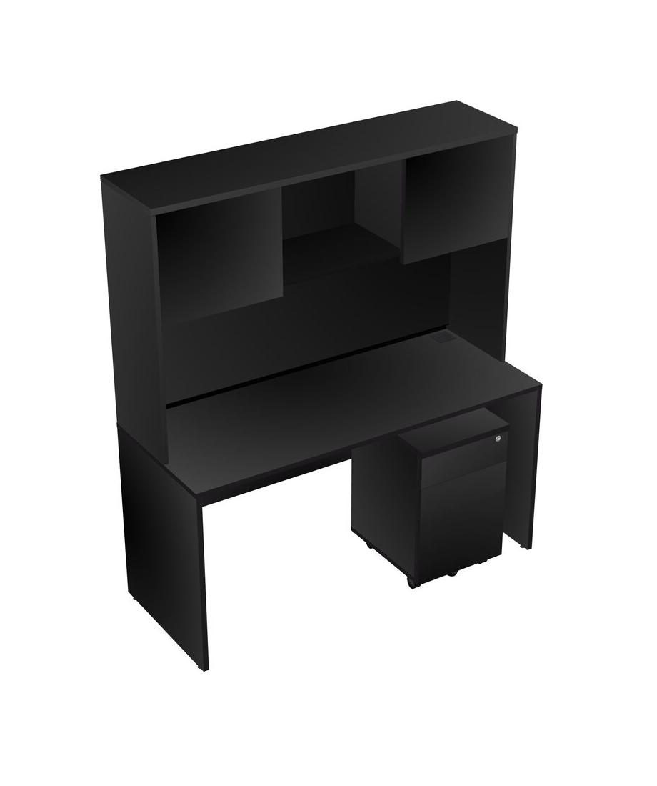 Black Rectangular Office Desk Plus Black Wooden Mobile Drawers And Black Hutch