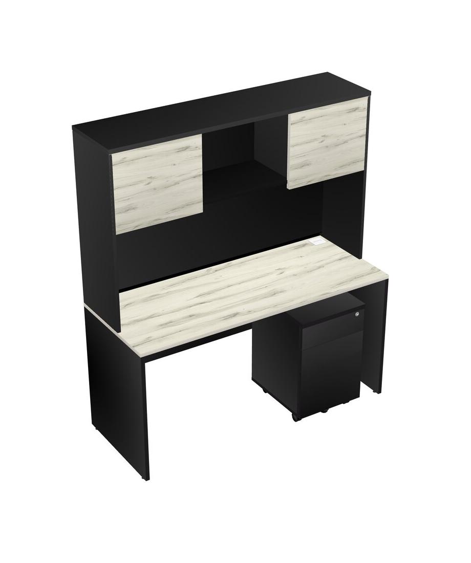Heinne Holz Rectangular Office Desk Plus Black Wooden Mobile Drawers And Black Hutch