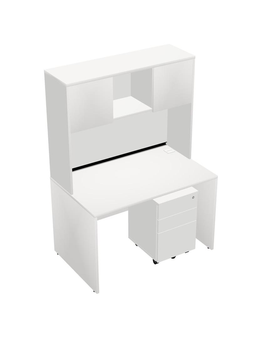 White Rectangular Office Desk Plus White Wooden Mobile Drawers And White Hutch