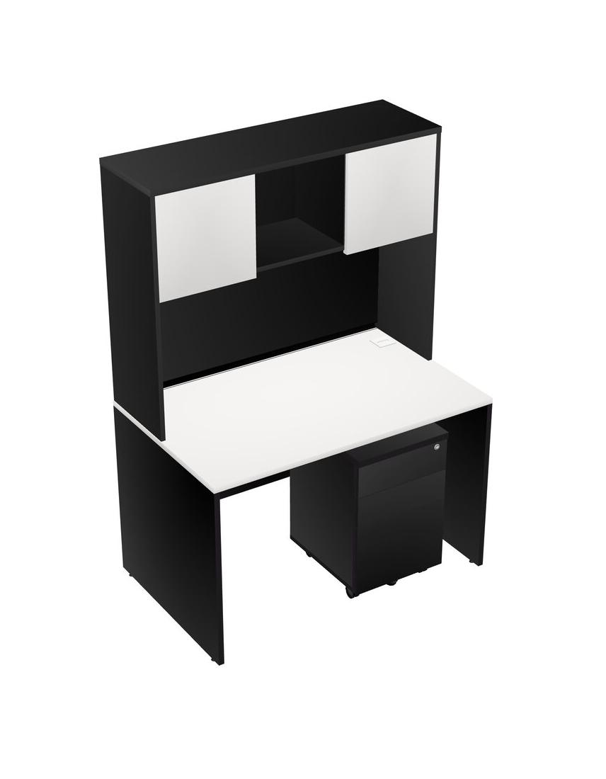 White Rectangular Office Desk Plus Black Wooden Mobile Drawers And Black Hutch