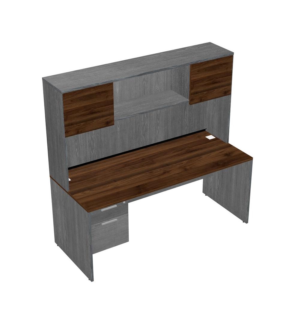 Columbia Walnut Rectangular Office Desk Plus Grey Hanging Drawers And Grey Hutch