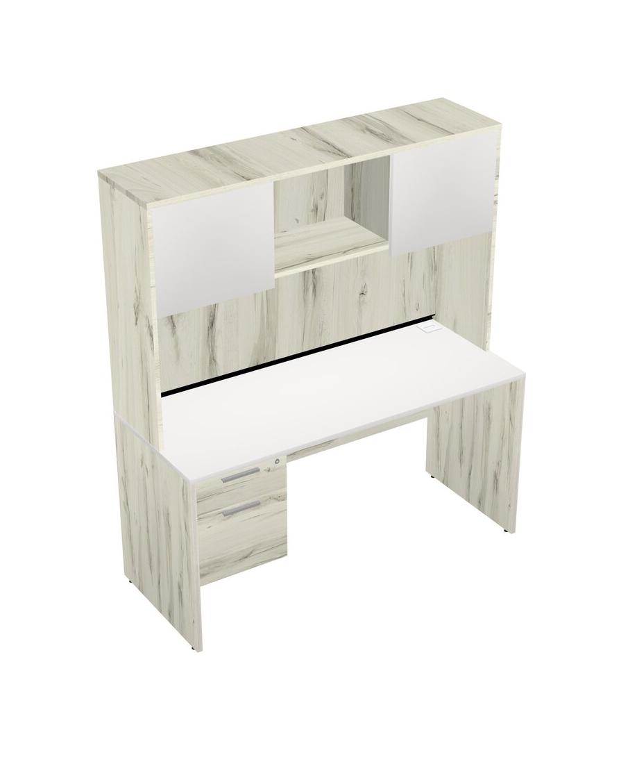 White Rectangular Office Desk Plus Heinne Holz Hanging Drawers And Heinne Holz Hutch