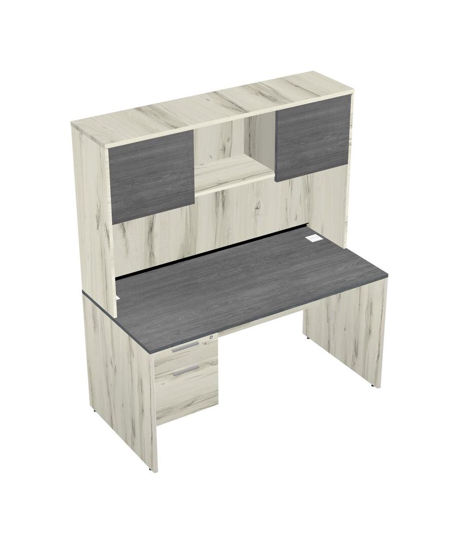 Grey Rectangular Office Desk Plus Heinne Holz Hanging Drawers And Heinne Holz Hutch