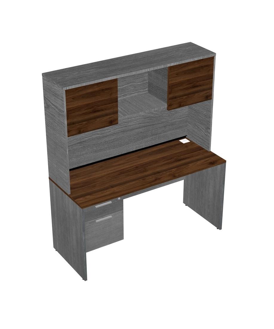 Columbia Walnut Rectangular Office Desk Plus Grey Hanging Drawers And Grey Hutch