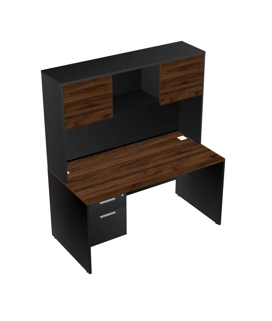 Columbia Walnut Rectangular Office Desk Plus Black Hanging Drawers And Black Hutch
