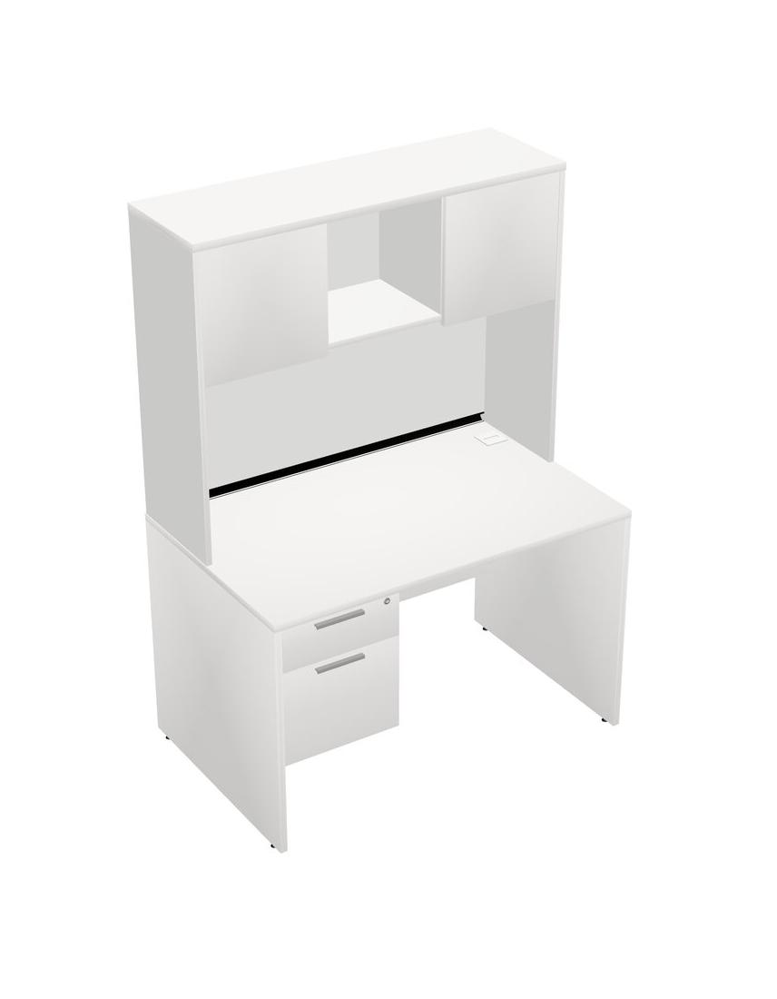 White Rectangular Office Desk Plus White Hanging Drawers And White Hutch