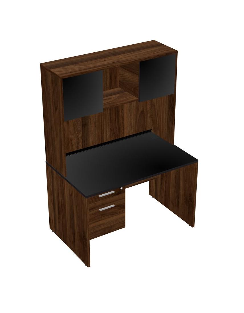 Black Rectangular Office Desk Plus Columbia Walnut Hanging Drawers And Columbia Walnut Hutch