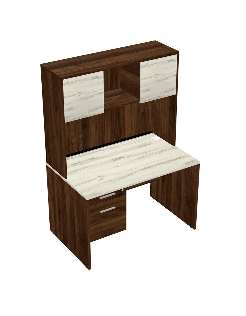 Heinne Holz Rectangular Office Desk Plus Columbia Walnut Hanging Drawers And Columbia Walnut Hutch