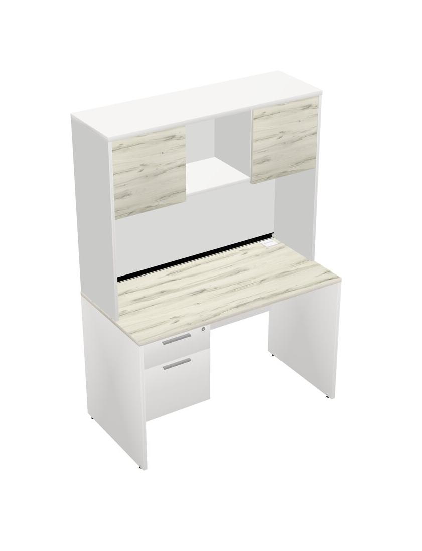 Heinne Holz Rectangular Office Desk Plus White Hanging Drawers And White Hutch
