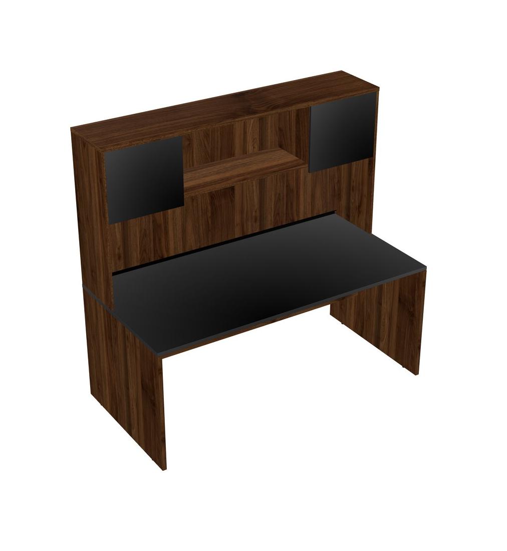 Black Rectangular Office Desk And Columbia Walnut Hutch