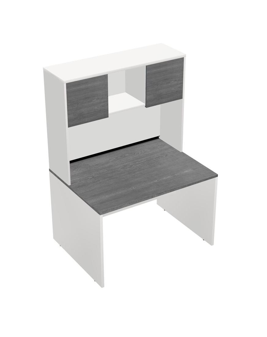 Grey Rectangular Office Desk And White Hutch