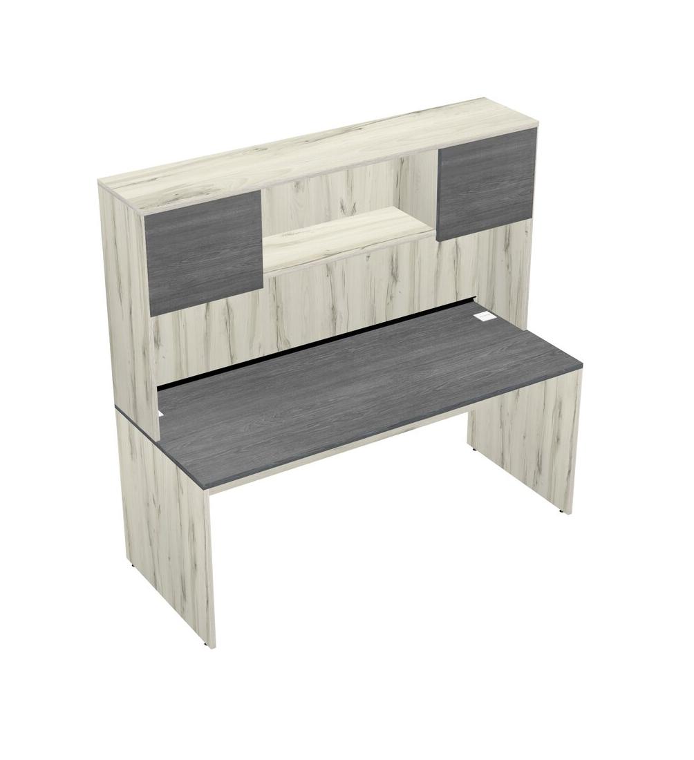 Grey Rectangular Office Desk And Heinne Holz Hutch