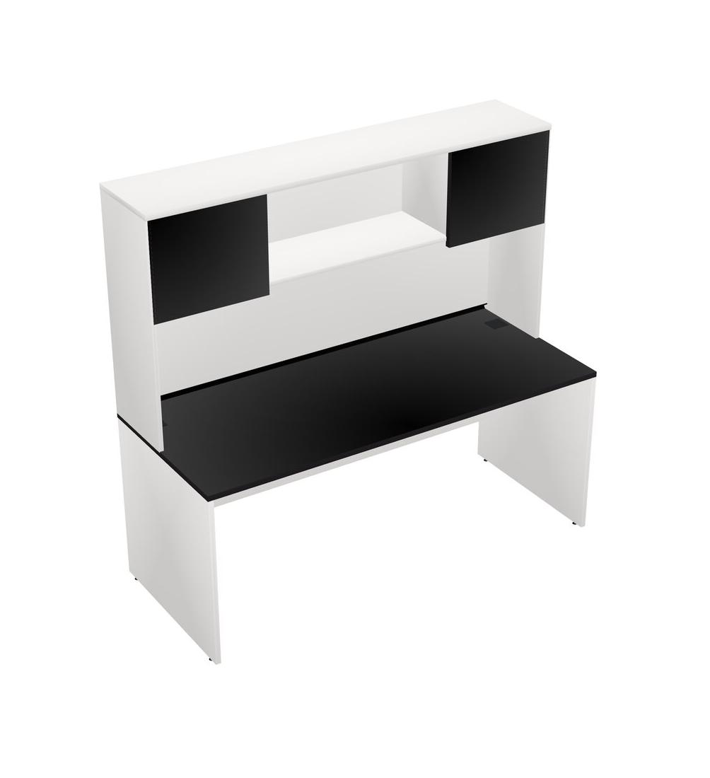 Black Rectangular Office Desk And White Hutch