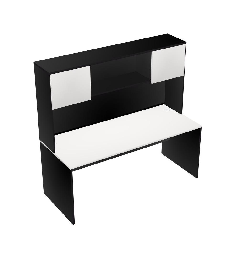 White Rectangular Office Desk And Black Hutch