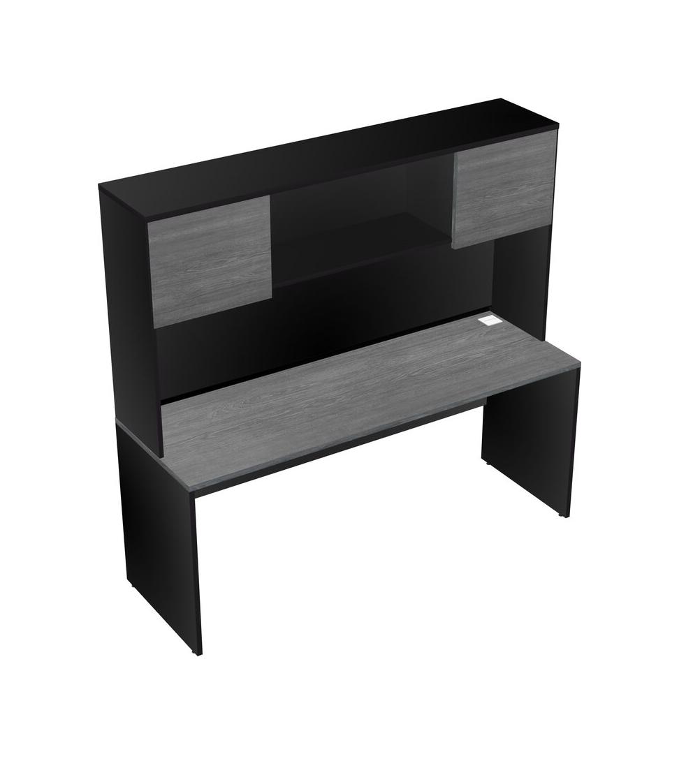Grey Rectangular Office Desk And Black Hutch