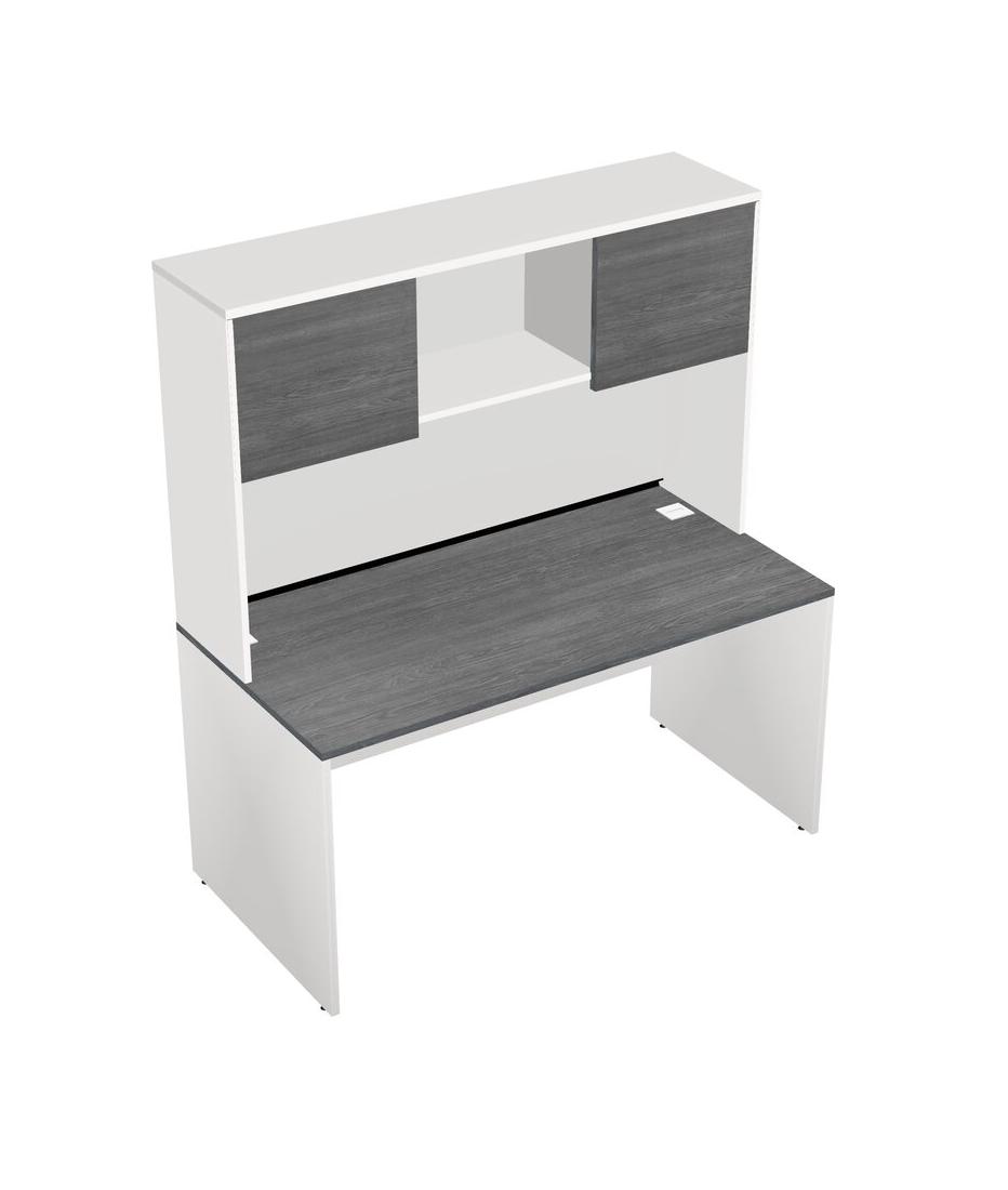 Grey Rectangular Office Desk And White Hutch